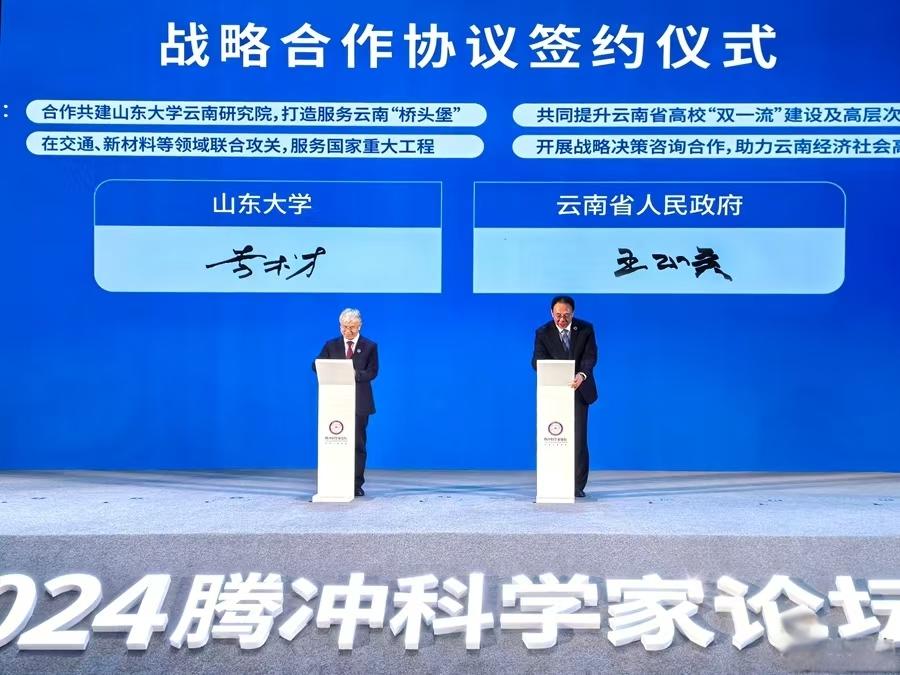 开幕式上,李术才与云南省副省长王正英代表双方签署《云南省人民政府山东大学战略合作框架协议》。山东大学将与云南省进一步深化全面合作,扎实推进教育、科技、人才整体联动,以加快发展新质生产力、推动高质量发展为核心,推动教育链、创新链、人才链与产业链的有机衔接,促进校地深度融合、共赢发展。