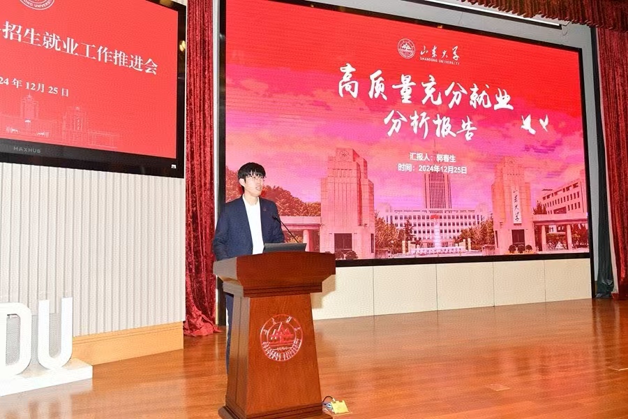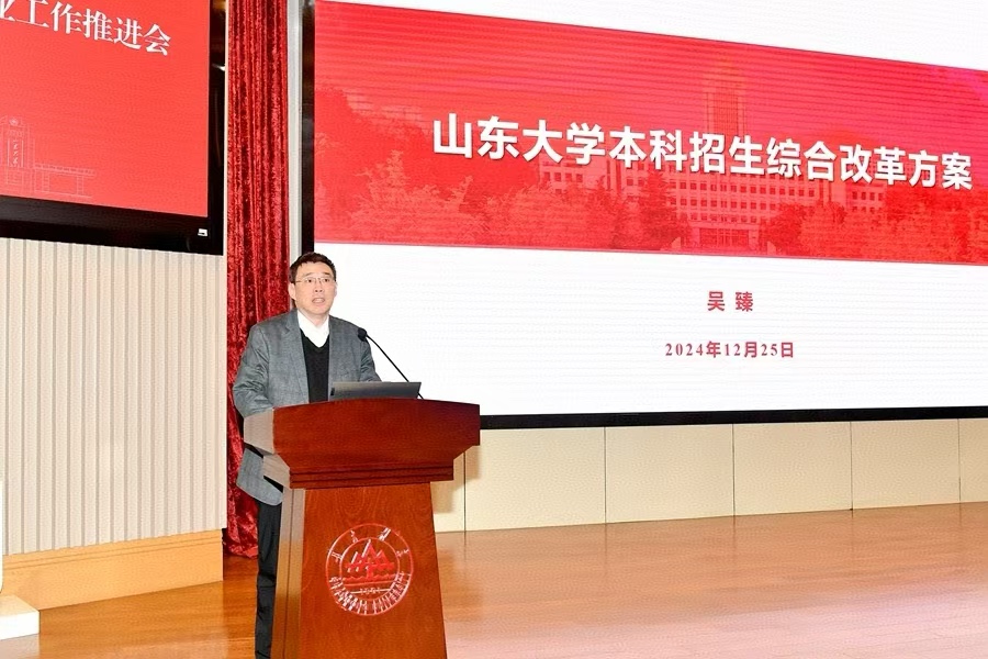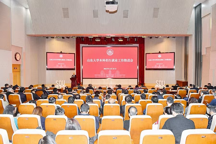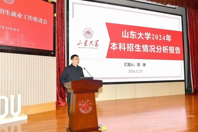12月25日上午,山东大学本科招生就业工作推进会在中心校区举行。会议全面总结学校近年来招生就业工作的成绩和问题,系统谋划招生就业工作助推学校高质量发展思路举措,安排部署2025年招生就业工作重点任务。校党委书记任友群、校长李术才出席会议并讲话。常务副校长吴臻主持会议。