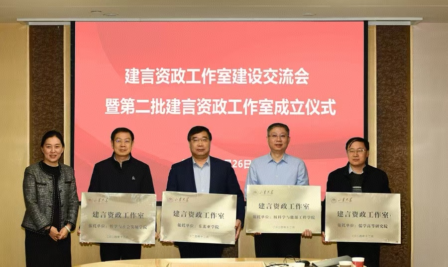 会上,第二批建言资政工作室正式揭牌成立。学校党委常委、副校长、哲学与社会发展学院院长曹现强,全国政协常委、儒学高等研究院院长王学典,省政协委员、核科学与能源动力学院常务副院长王守宇,东北亚学院院长刘昌明受聘为牵头人。第二批建言资政工作室负责人结合学科优势和建设基础分别交流了任务目标和建设举措。
