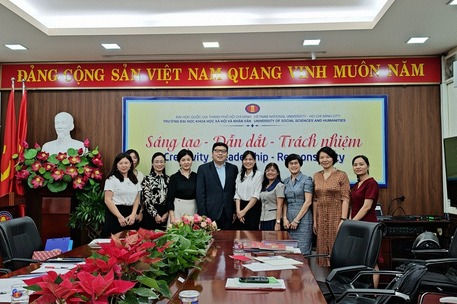 在胡志明国家大学所属人文社科大学(USSH VNU HCM),双方就越南高校中文系与中国学、中国哲学专业人才培养进行了深入交流,探讨在人文学科协同创新方面加强合作,推动在全球汉籍合璧工程、海外儒学研究方面的合作。