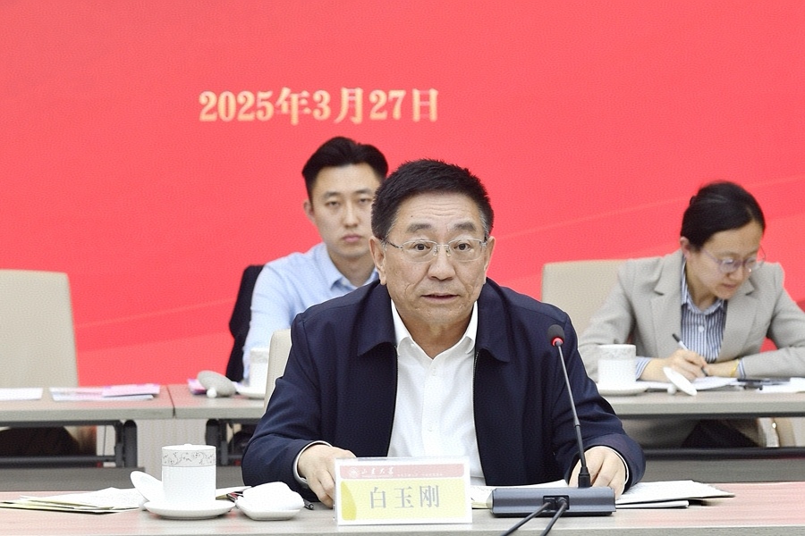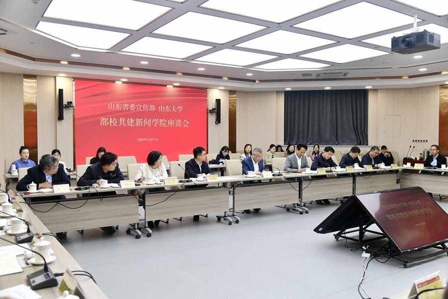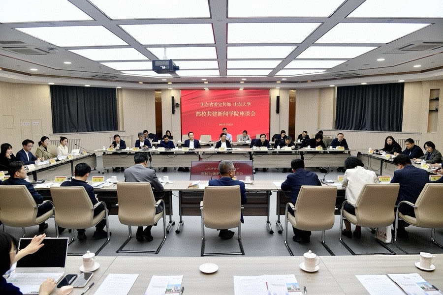 3月27日下午,山东省委宣传部与山东大学召开部校共建新闻学院座谈会。省委常委、宣传部部长白玉刚,校党委书记任友群出席座谈会。