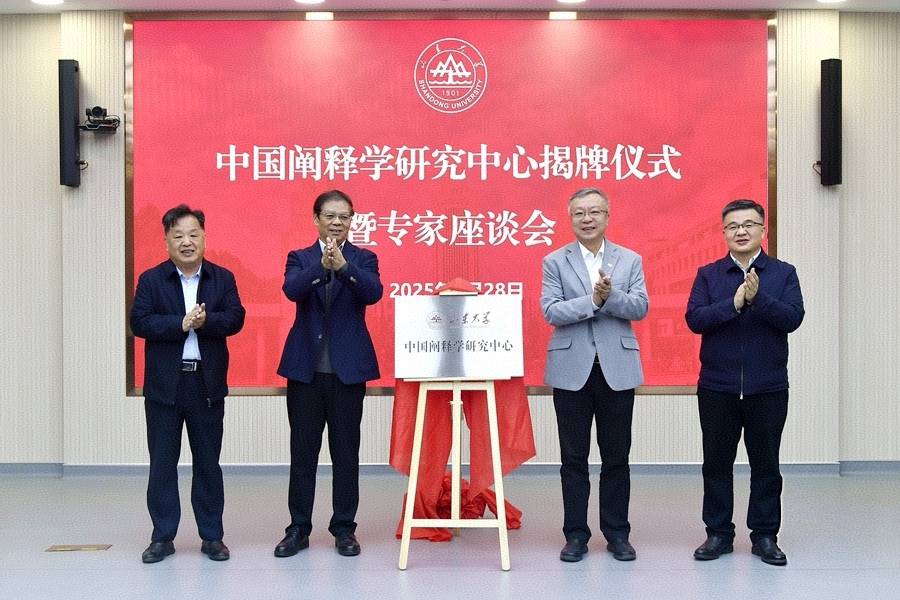 任友群、张江、闫军、侯典明共同为“山东大学中国阐释学研究中心”揭牌。