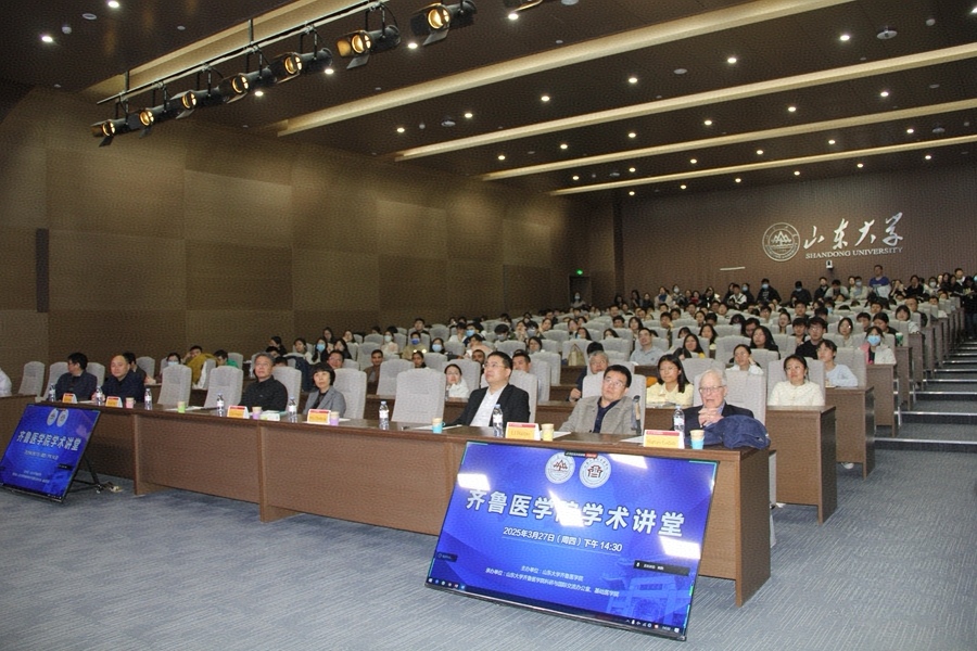 齐鲁医学院常务副院长马春红主持学术讲座。讲座结束后,哈维·洛迪什教授与基础医学院、药学院等单位的年轻学者进行了座谈交流。