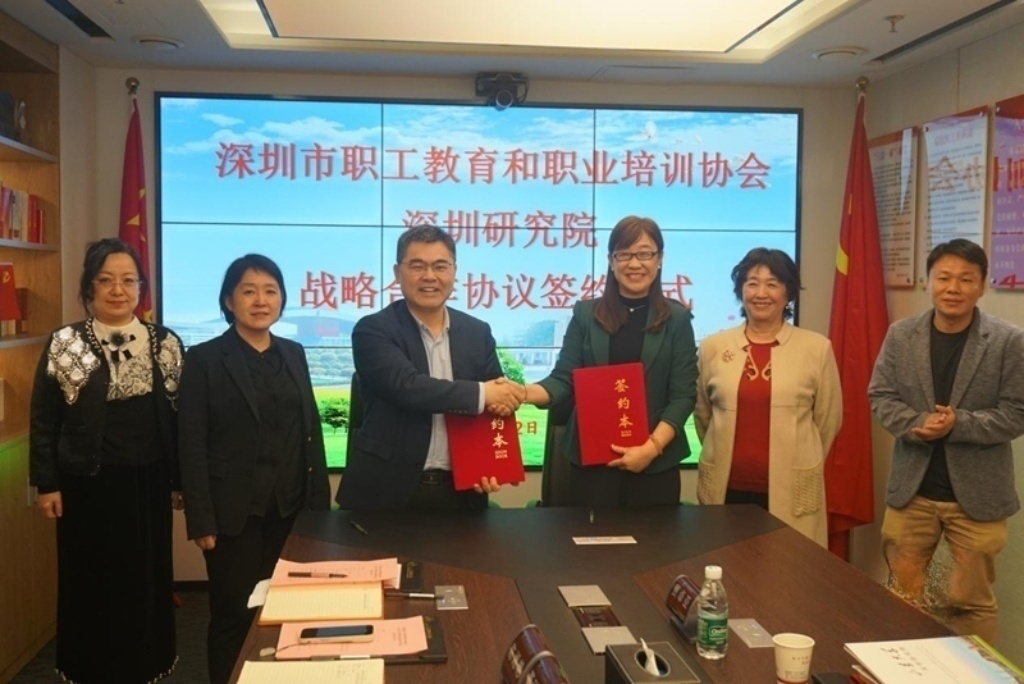 4月2日,深圳市职工教育和职业培训协会与山东大学深圳研究院战略合作协议签约仪式隆重举行。深圳市职工教育和职业培训协会会长蔡焕行、秘书长樊玉林、专家张虹;山东大学校友会理事、深圳校友会副会长傅杰,山东大学深圳研究院院长周庆华等出席签约仪式。
