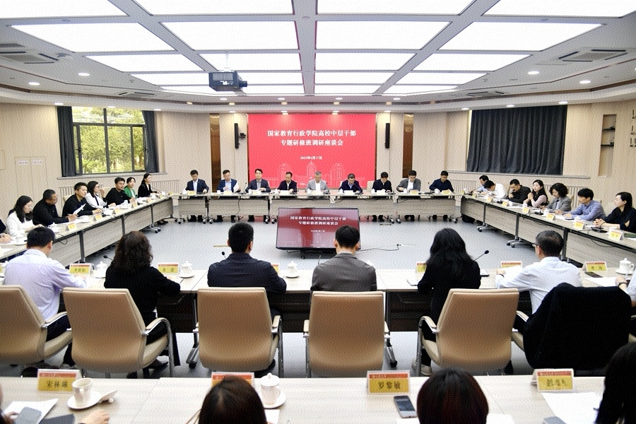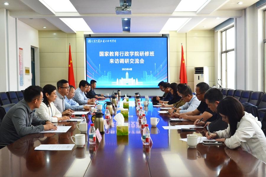 4月17日,国家教育行政学院第28期高校中层干部专题研修班一行来校,围绕深化高等教育综合改革、推动产教深度融合开展调研。校党委书记任友群出席座谈会并介绍学校事业改革发展情况。常务副校长吴臻主持座谈会。