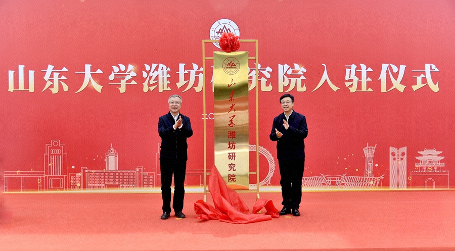 4月18日上午,山东大学潍坊研究院入驻仪式在潍坊市举行。校党委书记任友群、潍坊市委书记刘运出席活动并致辞。潍坊市人大常委会党组书记、主任高峰,潍坊市委常委、宣传部部长杨建华,潍坊市政协党组副书记、副主席王富,校党委副书记陈宏伟参加活动。潍坊市政府副市长马勇主持活动。
