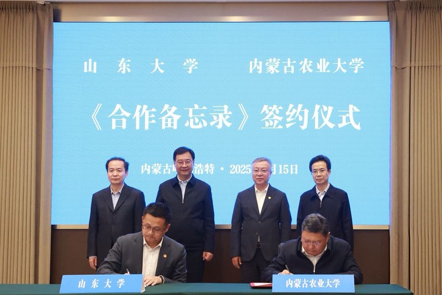 5月15日,山东大学、呼和浩特市人民政府、内蒙古自治区教育厅共建“山东大学内蒙古研究院”暨自治区6所高校与山东大学签署《合作备忘录》签约仪式在呼和浩特举行。校党委书记任友群,内蒙古自治区党委常委、宣传部部长、自治区人民政府副主席包献华,内蒙古自治区教育厅党组书记、厅长杜汇良,呼和浩特市委副书记、市人民政府党组书记、市长贺海东见证签约。