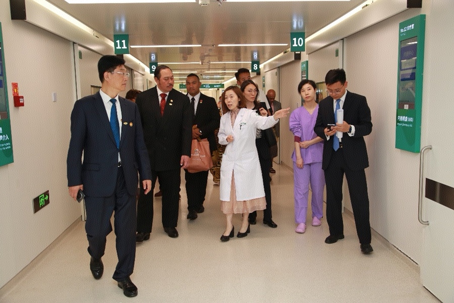 访问期间,图普托阿一行实地参观了齐鲁楼零磁医学联合研究中心、内镜中心以及急诊内科病房。
