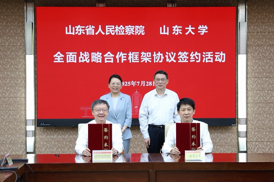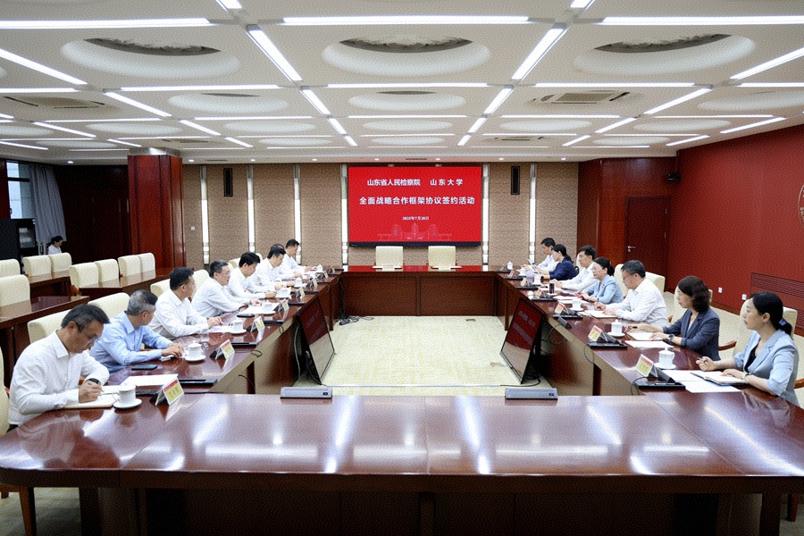 7月28日,山东大学与山东省人民检察院全面战略合作框架协议签约活动在中心校区举行。常务副校长吴臻,山东省人民检察院党组副书记、副检察长于玉出席活动并致辞。山东省人民检察院党组成员、政治部主任刘建军,校党委常委、宣传部部长张帅代表双方签约。