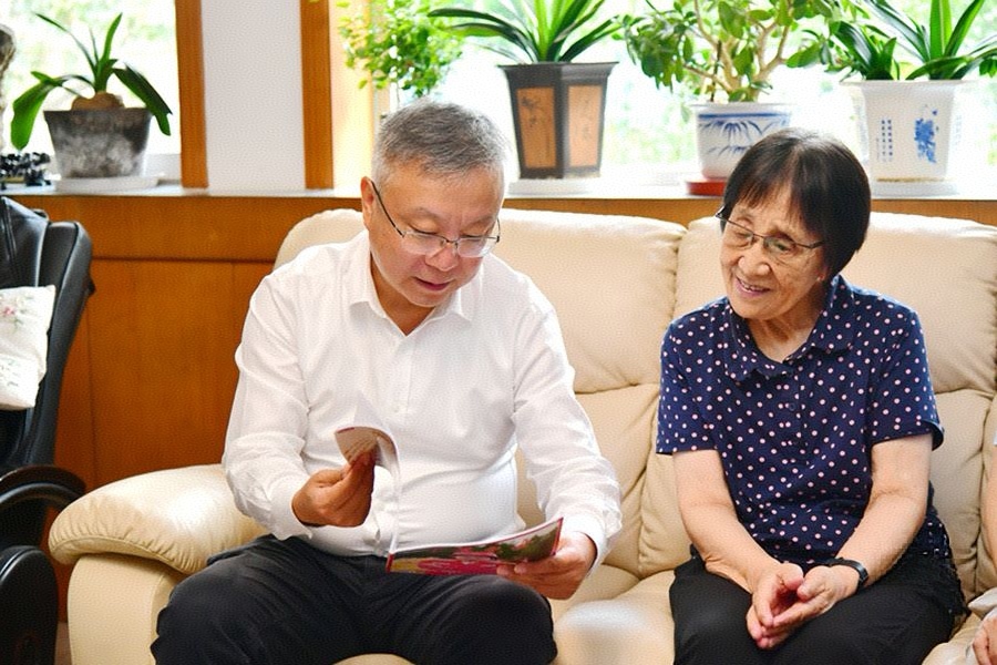 8月1日,值山东大学原副校长、中国科学院院士,著名晶体材料学家、教育家蒋民华先生诞辰90周年之际,校党委书记任友群看望慰问其夫人汪复宁女士,代表学校向她表达了深切的敬意与诚挚的问候。天津理工大学吴以成教授,蒋民华先生的弟子、清华大学类脑计算研究中心主任施路平教授一同参加慰问。