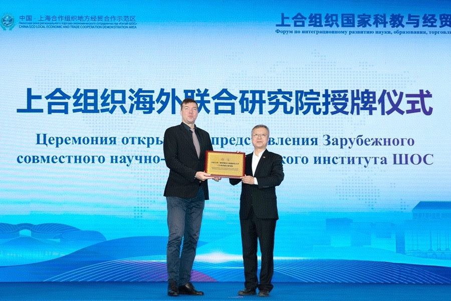 开幕式上,“上合组织海外联合研究院”授牌仪式举行。任友群为俄罗斯国立核能研究大学、吉尔吉斯国立大学授牌。