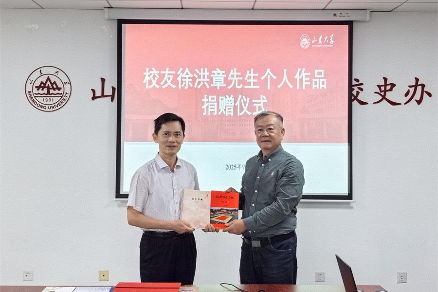 9月22日,政治系1968届校友、退役少将徐洪章委托其亲属胡凤林先生向学校档案馆、校史办捐赠《颂中华赋》《军旅昨天》等个人著作共计9部。档案馆馆长、校史办公室主任赵海出席捐赠仪式并接受捐赠。
