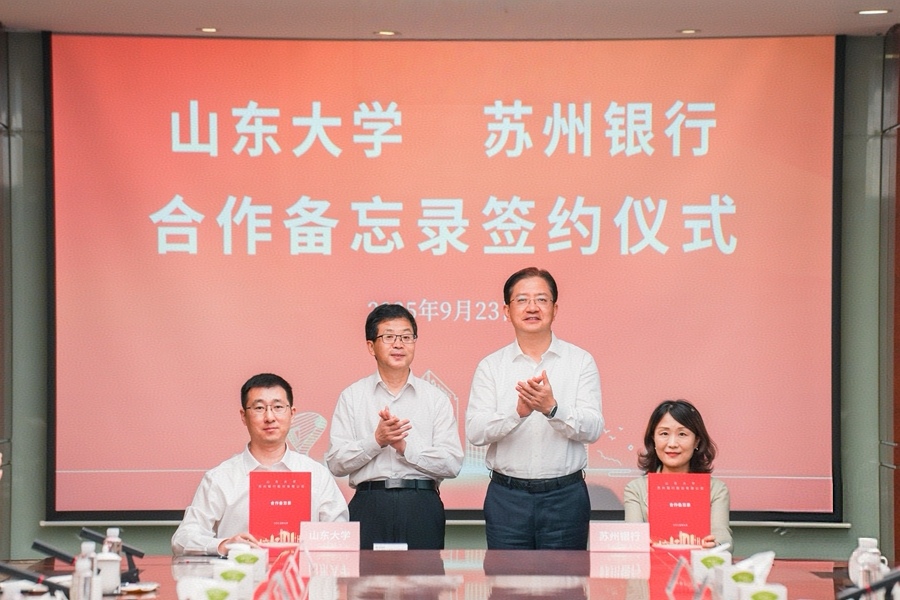 9月23日,山东大学与苏州银行合作备忘录签约仪式在苏州银行举行。校党委副书记陈宏伟,苏州银行党委书记、董事长崔庆军出席活动并致辞。