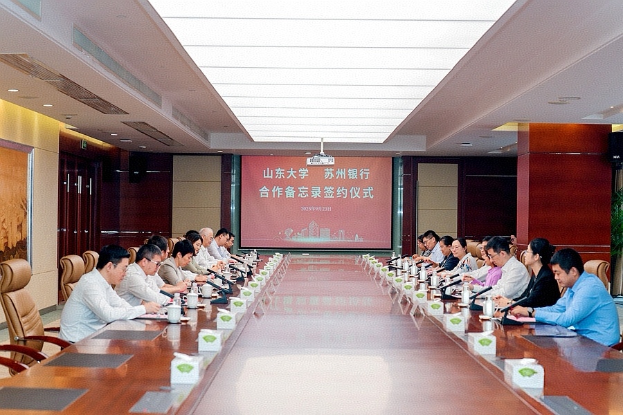 仪式上,山东大学合作发展部副部长蒋红光、苏州银行业务总监陈洁代表双方签署合作备忘录。与会人员观看了双方宣传片并围绕合作内容进行讨论交流。