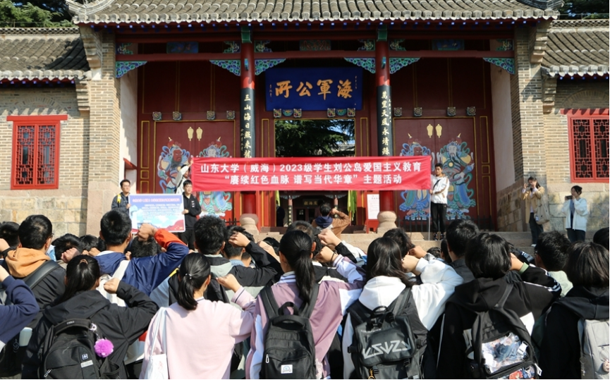 2023年11月,国家文物局办公室、教育部办公厅公布了以革命文物为主题的“大思政课”优质资源项目名单,山东大学“硬核”思政课——“刘公岛开学第一课”入选10个示范项目之一。每年开学季,在提督府广场前,师生们都会列队庄重宣誓,铿锵有力的宣誓声回荡在刘公岛上空。这堂别开生面的开学第一课,已覆盖本科生、硕士生5万余人。