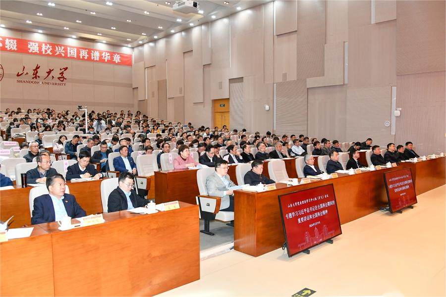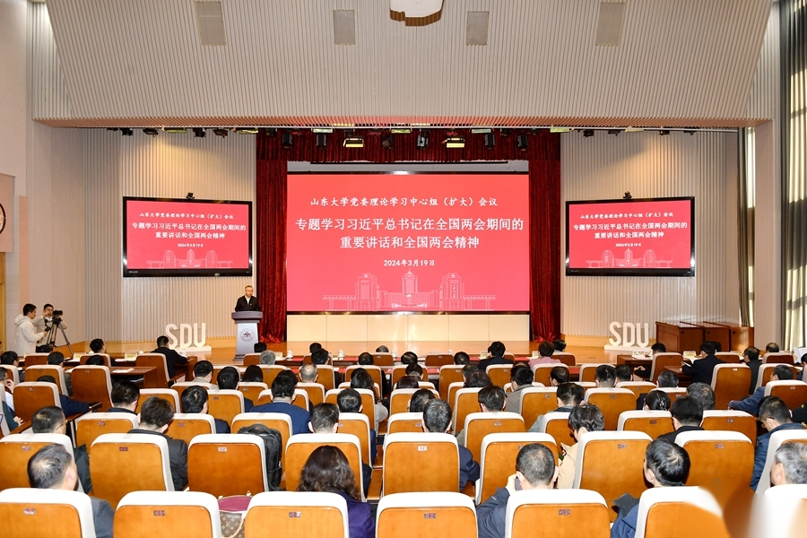 会议在中心校区设主会场,威海校区、青岛校区、齐鲁医学院设视频分会场。校党委理论学习中心组成员,出席全国两会的人大代表和政协委员,党委委员,纪委委员,威海校区、青岛校区和齐鲁医学院党工委领导班子成员,教学科研机构、机关各职能部门、直属附属单位、齐鲁医院、第二医院相关负责人,民主党派、统战团体负责人参加会议。
