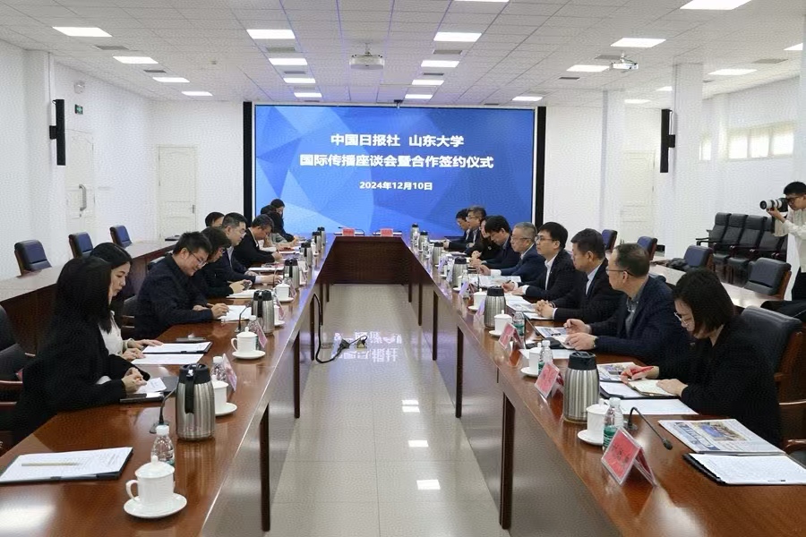 会上,山东大学和中国日报社相关部门负责人作交流发言。