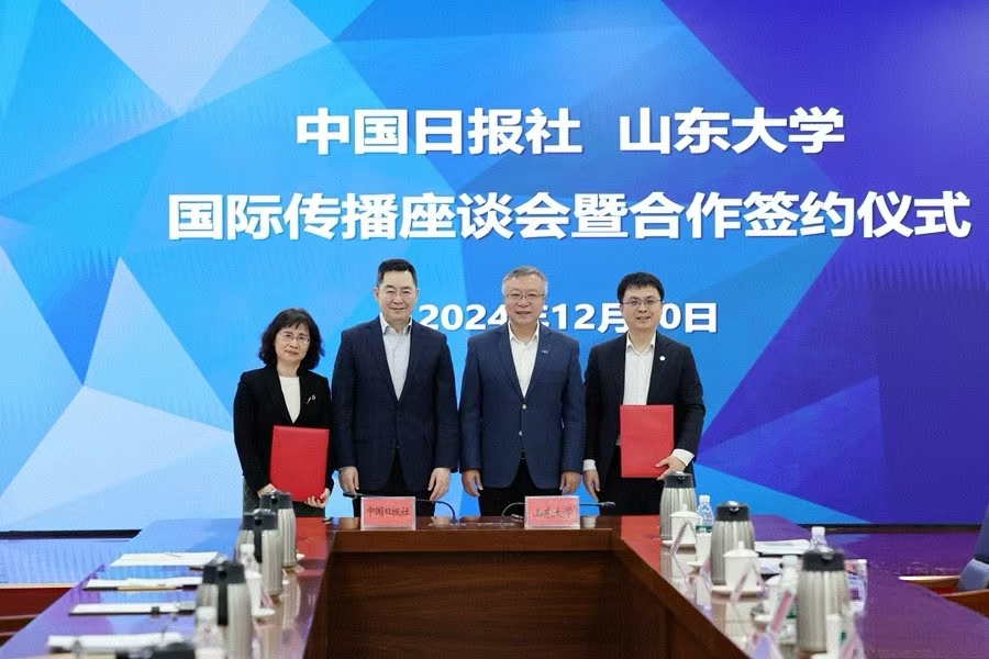 12月10日,山东大学与中国日报社在北京签署国际传播战略合作协议。山东大学党委书记任友群、中国日报社社长兼总编辑曲莹璞出席签约仪式。中国日报社副总编辑刘伟玲、山东大学党委副书记李向阳代表双方签署战略合作协议。