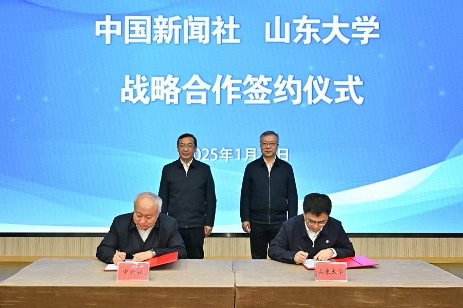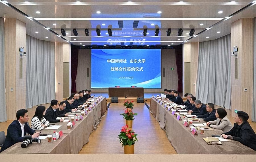 1月23日,山东大学与中国新闻社在北京签订战略合作协议。校党委书记任友群,中国新闻社党委书记、社长陈陆军出席签约仪式。中国新闻社党委副书记、总编辑张明新,校党委副书记李向阳代表双方签约。中国新闻社副社长陈建辉主持签约。