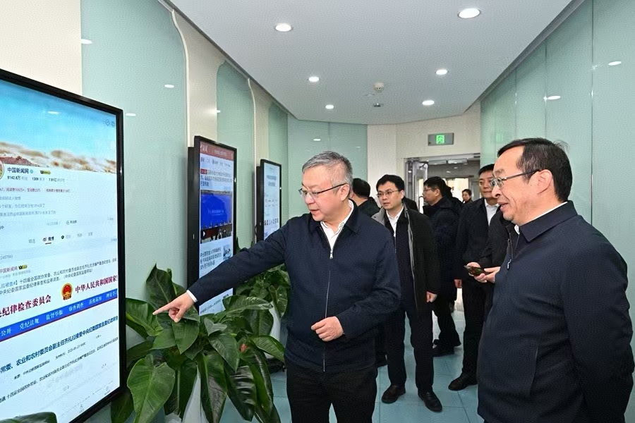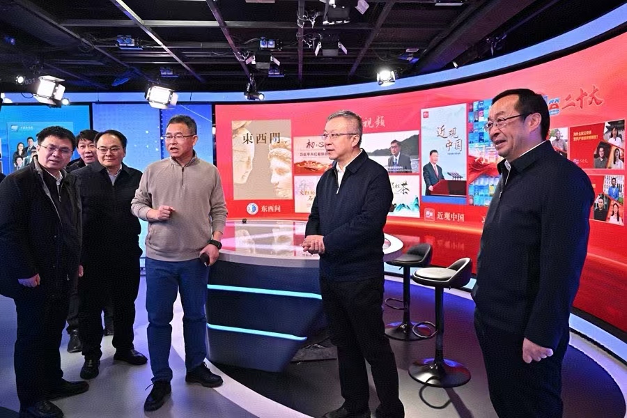 会前,任友群一行在中国新闻社参观调研媒体融合与国际传播工作。