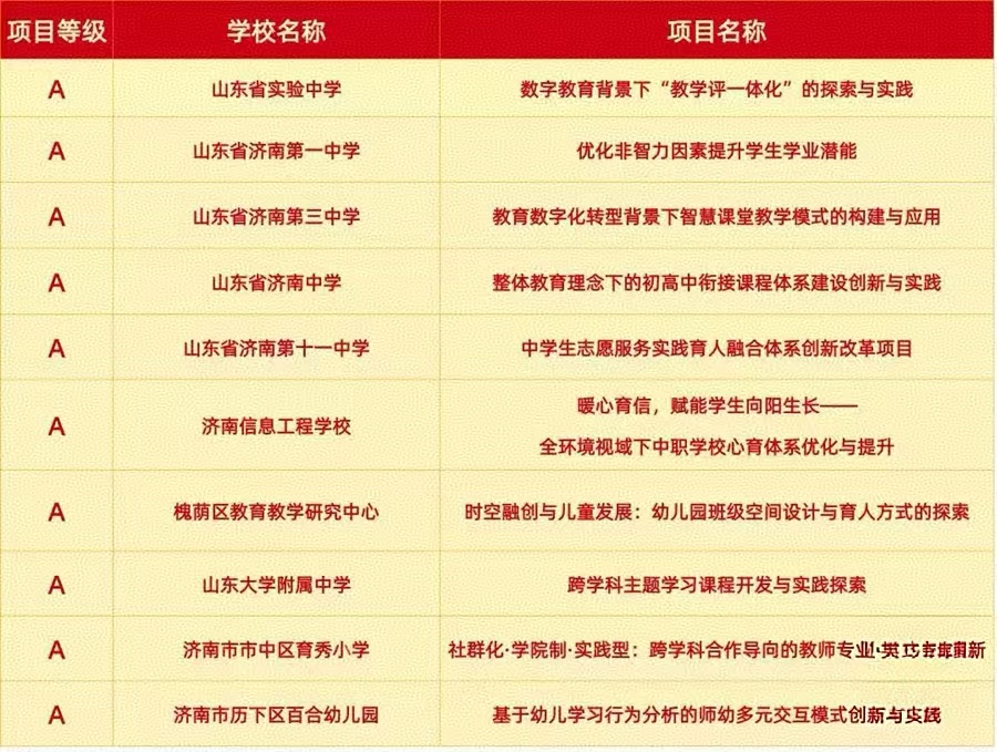 近日,济南市教育局发布了《2024年度济南市教育综合改革全链条培育项目验收评估结果公示》,山东大学附属中学申报的项目“跨学科主题学习课程开发与实践探索”和济南振声学校申报的项目“基础教育与高等教育联合育人的行动研究”顺利通过验收。