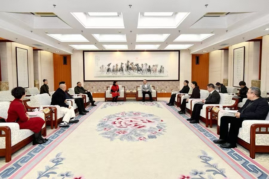 校党委副书记李向阳,党委常委、统战部部长马晓琳参加会见。会见后,任友群与代表团一同调研山东省话剧院,观看话剧《买河村的七月》排练片段,并与山东省文旅厅厅长喻剑南及主要演职人员座谈交流。