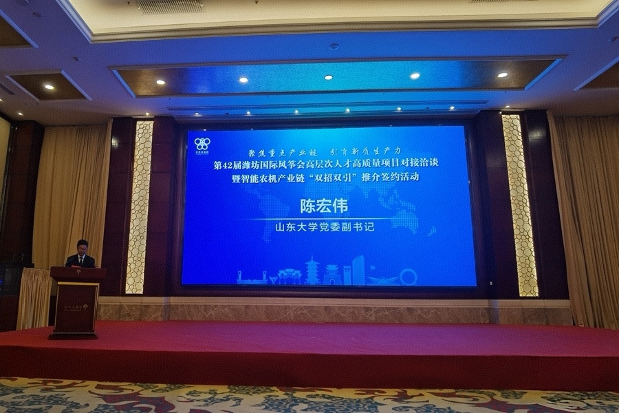 在潍期间,陈宏伟还代表学校参加了第42届潍坊国际风筝会高层次人才高质量项目对接洽谈暨智能农机产业链“双招双引”推介签约活动并致辞。