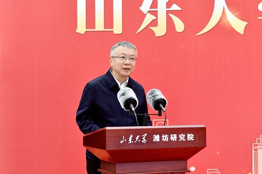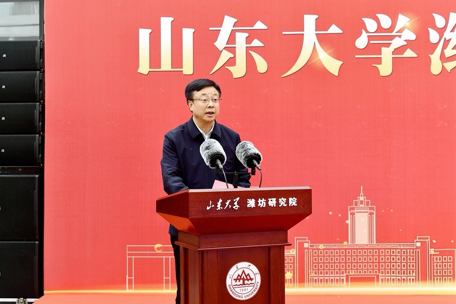 刘运在致辞中说,山东大学与潍坊的情缘源远流长,步入新时代新征程,双方始终携手共进、同向同行,书写了校地深度融合、双向赋能发展的精彩篇章。山东大学潍坊研究院是双方开展深度战略合作的又一重大平台,对于深化校地产学研协同创新、推动高质量发展具有重要而深远的意义。潍坊市将借助研究院这一高端平台,与山东大学一道,携手共筑科教融合的新高地,合力共绘产业协同的新图景,共同塑优引智育才的新生态。潍坊市也将倾力创造最优环境、给予最大支持,为推动山东大学潍坊研究院高质量发展提供坚实保障。