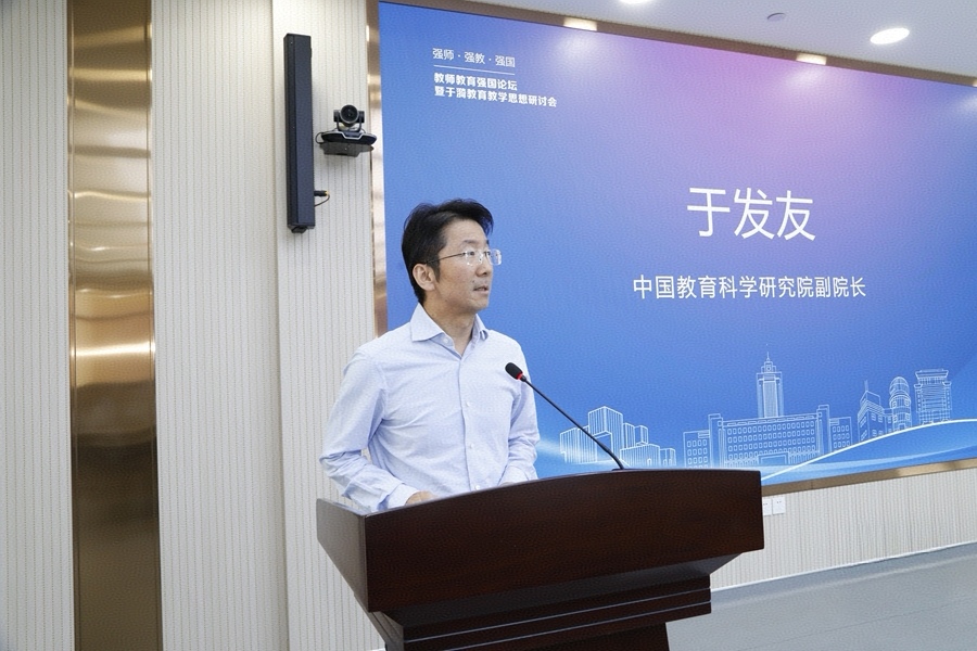 于发友表示,贯彻落实教育强国建设战略部署,需要凝聚多方合力和加强科研引领,进一步强化理论研究、战略研究、评价研究、比较研究和行动研究,共同锻造政治素质、业务能力、育人水平协同提升的新时代高水平教师队伍,书写教育强国建设的新篇章。