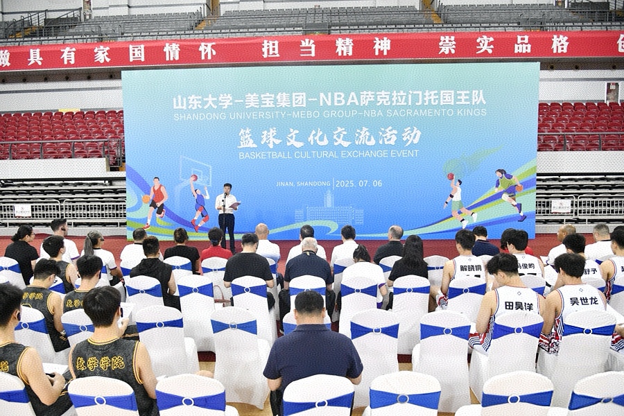 7月6日,山东大学-美宝集团-萨克拉门托国王队篮球文化交流活动在中心校区篮球馆举办。常务副校长吴臻参加活动并致辞,副校长、齐鲁医学院院长易凡主持活动。