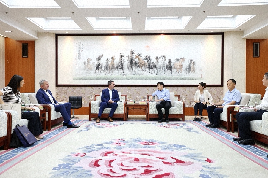 9月15日,匈牙利欧布达大学校长Levente Kovács率团访问山东大学,副校长易凡会见代表团一行。