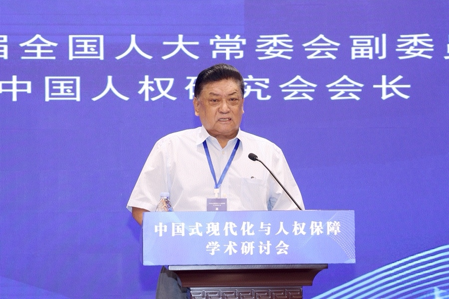 蒋建国,中国人权研究会副会长鲁广锦,南开大学人权研究中心主任常健,《华东政法大学学报》主编马长山分别就“抗战胜利的当代人权意义”“中国式现代化开辟人权文明新境界”“现代国家治理视域下全过程人民民主的现实形态与保障机制”“数字人权的中国图景”作主旨报告。