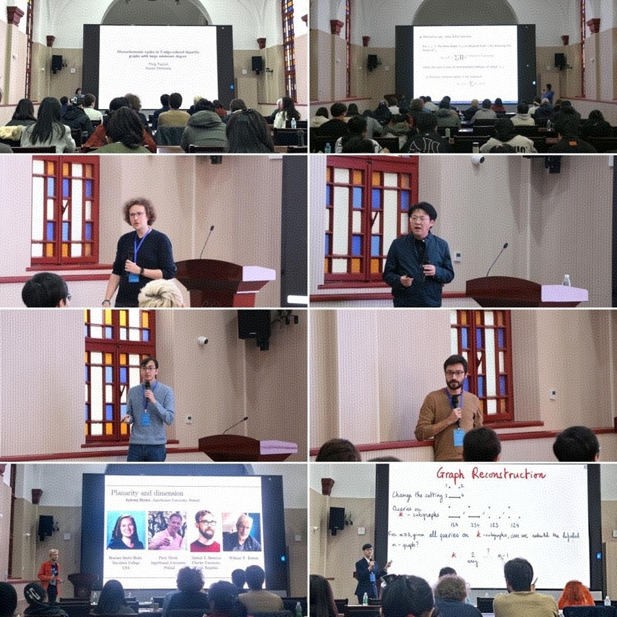 开幕式结束后,会议围绕图论、组合数学、算法理论及应用等领域开展多场学术报告。湖南大学彭岳建教授,南开大学郭龙教授,中国科学技术大学马杰教授,山东大学杨东雷教授、上官冲教授,巴黎萨克雷大学François Pirot副教授、Hoang La副教授、Quentin Chuet博士,里昂第一大学Théo Pierron副教授,牛津大学Paul Bastide博士后研究员,特拉维夫大学孔祥粱博士后研究员,华沙大学Julien Duron博士,雅盖隆大学Jędrzej Hodor博士等分别作专题报告分享研究成果。此外,会议设置问题分享、分组研讨、进展汇报环节,参会学者围绕核心问题与猜想展开集体研讨交流,为相关前沿研究拓展了新的思路方法。