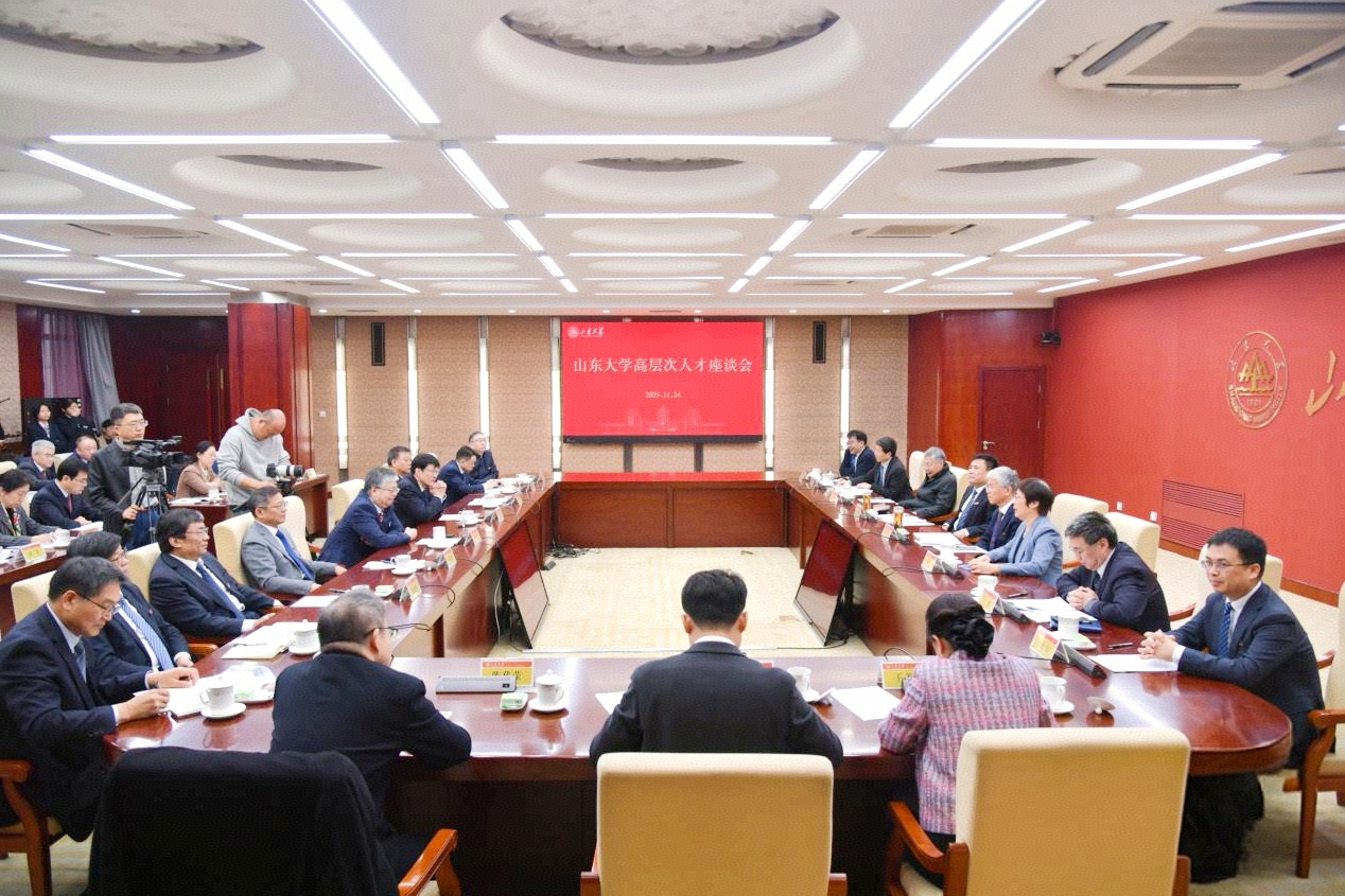11月24日,山东大学高层次人才(自然科学领域)座谈会在中心校区召开。校党委书记李忠军、校长李术才出席会议并讲话。中国科学院院士彭实戈、中国科学院院士王小云、中国工程院院士王桥,2025年新当选中国科学院院士刘建亚、中国科学院院士梁作堂、中国工程院外籍院士张友明等专家学者参会。