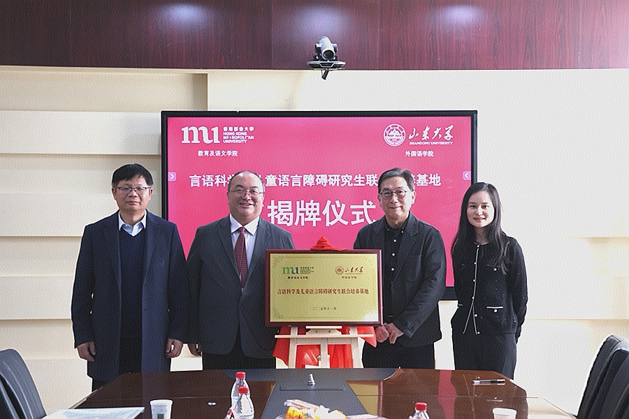 11月21日,山东大学外国语学院与香港都会大学教育及语文学院合作共建的言语科学及儿童语言障碍研究生联合培养基地揭牌仪式在山东大学外国语学院举行。
