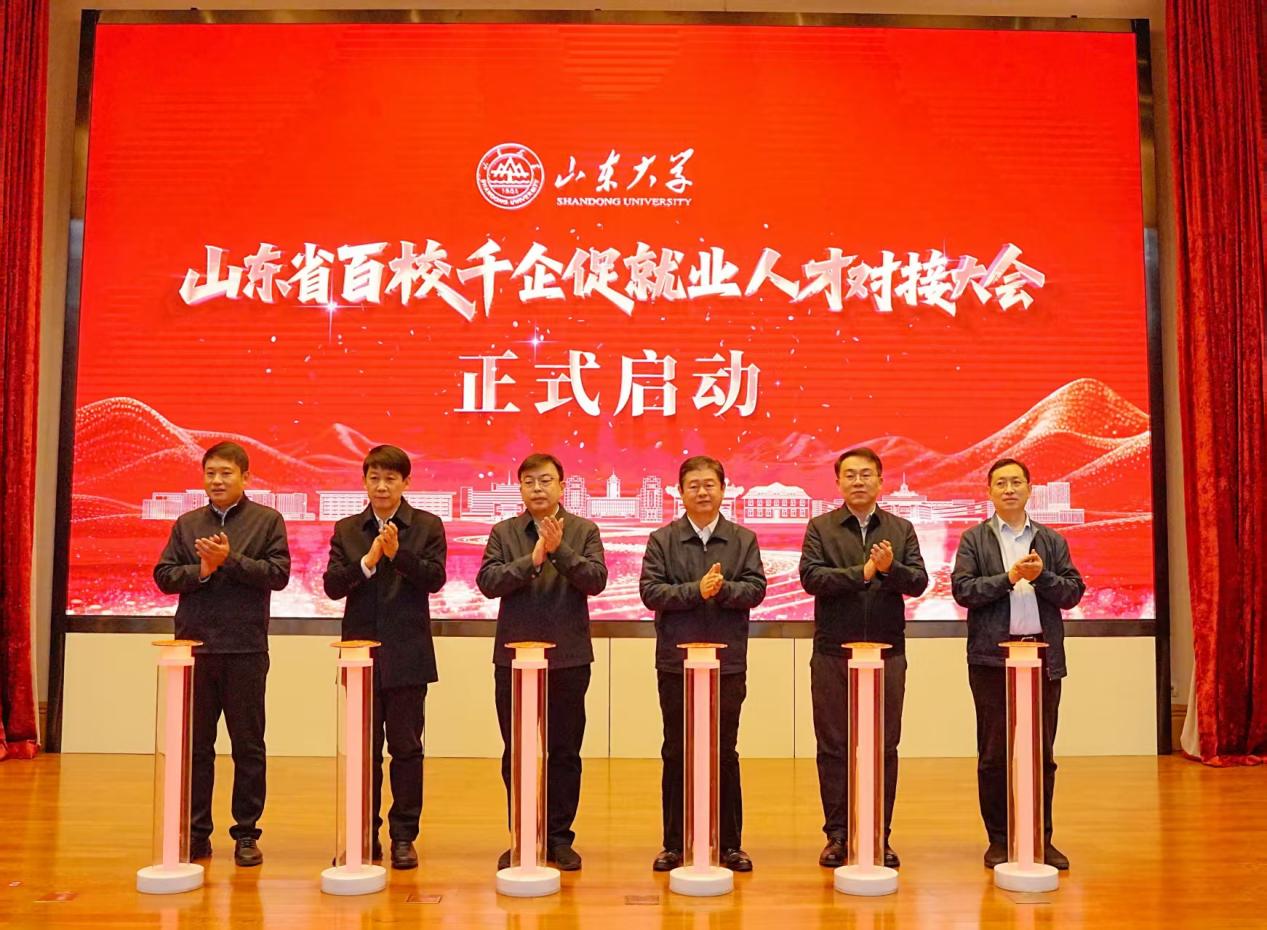 12月26日,山东省百校千企促就业人才对接大会在山东大学举行。山东大学党委副书记张帅,山东省公共就业和人才服务中心党委书记、主任杨卫华,山东省委教育工委委员,省教育厅党组成员、副厅长张志刚出席活动并致辞。