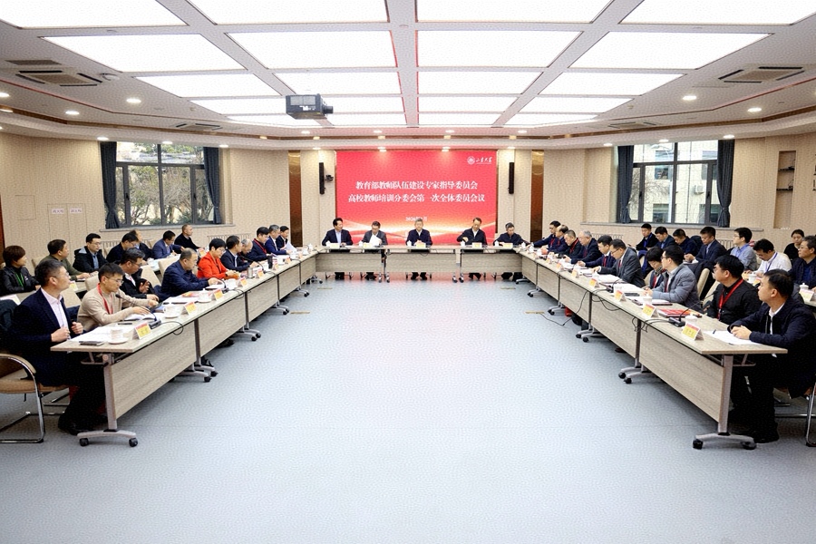 1月9日,教育部教师队伍建设专家指导委员会高校教师培训分委会第一次全体委员会议在山东大学召开。会议以“坚持教育家精神铸魂强师,加快推动高校教师队伍高质量发展”为主题。教育部教师工作司副司长黄小华,高校教师培训分委会主任委员、山东大学常务副校长吴臻出席会议。山东大学副校长曹现强主持会议。