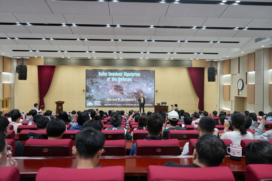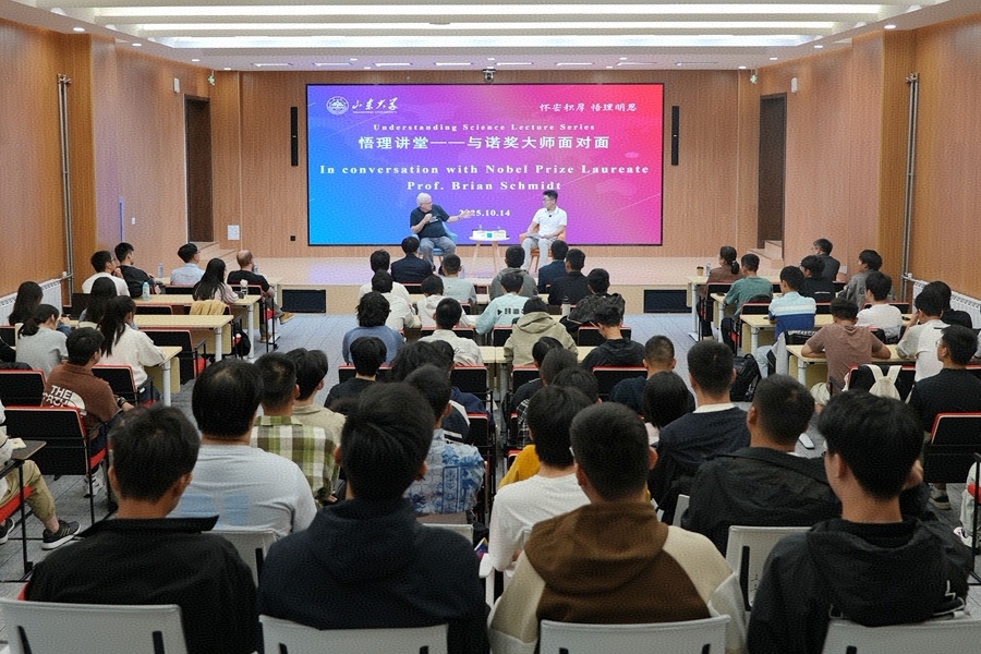 10月14日上午,布莱恩·施密特与山东大学澳国立联合理学院、空间科学与技术学院师生代表座谈。他从宇宙学新发现讲起,畅谈了个人成长经历和学术心得,勉励学子将科学作为有力工具,攻克气候变化等人类面临的共同难题。