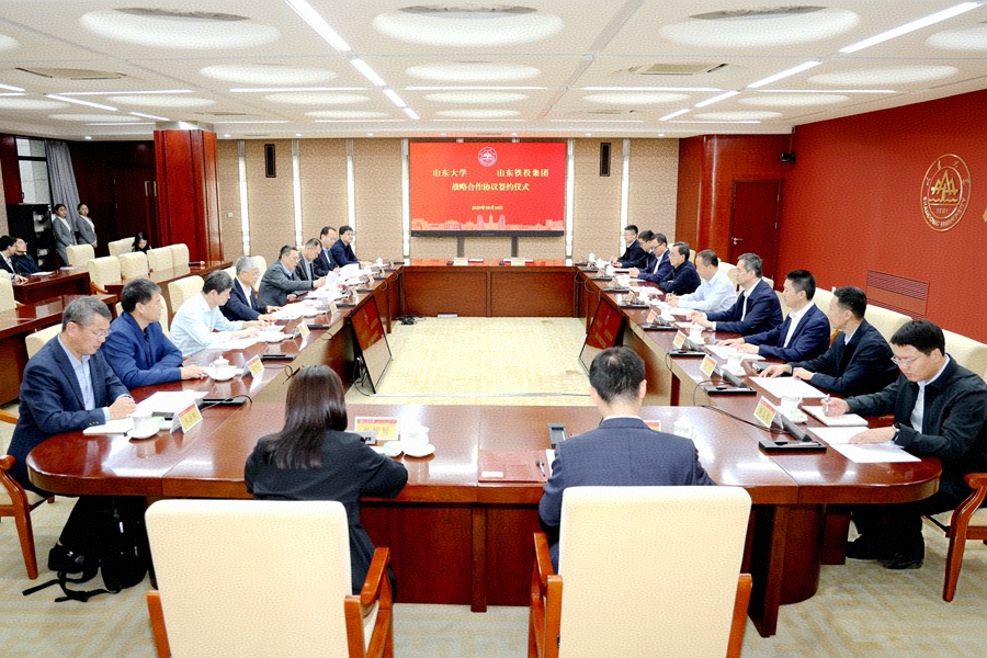 10月14日,山东大学与山东铁路投资控股集团有限公司战略合作协议签约仪式在中心校区举行。校长李术才,山东铁路投资控股集团有限公司党委书记、董事长王卫中出席活动并致辞。常务副校长吴臻主持签约仪式。