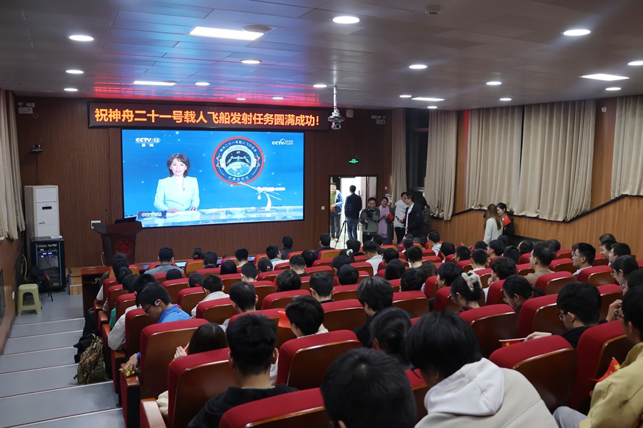 10月31日23时44分,搭载神舟二十一号载人飞船的长征二号F遥二十一运载火箭在酒泉卫星发射中心点火发射,约10分钟后,飞船与火箭成功分离,进入预定轨道,航天员乘组状态良好,发射取得圆满成功。山东大学校友张洪章顺利进入太空执行任务。