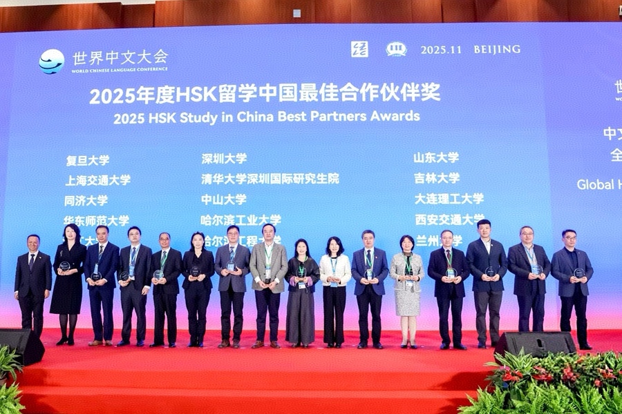 中文水平考试(HSK)全球合作伙伴大会上,山东大学荣获“2025年度HSK留学中国最佳合作伙伴奖”,并成为HSK留学中国平台首批入驻高校。