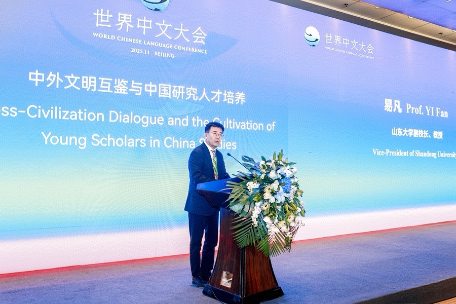11月14日至16日,2025世界中文大会在北京国家会议中心举行。中共中央政治局常委、国务院副总理丁薛祥出席大会开幕式,并发表主旨讲话。教育部部长怀进鹏主持开幕式,教育部副部长任友群在大会全体会议上作主旨报告。山东大学副校长易凡率团出席大会。
