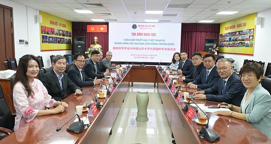 访问期间,代表团与越南哲学学会、越南社科翰林院学者进行座谈交流。越南哲学学会常务副会长、越共中央理论委员会委员、越南社会科学翰林院原副院长范文德介绍了学会及其会刊《哲学研究》的基本情况。他表示,中越双方在21世纪社会主义国家治理、“一带一路”建设与越南社会主义现代化发展深度融合等议题上具有共同研究兴趣,期待与山东大学携手产出更多成果。山东大学人文社科研究院院长郑敬斌介绍了山东大学总体情况,以及学校与越南社科翰林院在儒学研究领域的已有合作,并表示山东大学将充分发挥学科优势,持续推进与越方在社会主义研究领域的深入合作。政治学与公共管理学院院长马奔聚焦政治学与公共管理学院研究特色,提出双方可在数字经济转型、灾害治理、社会保障等领域开展长期合作,期待通过学术交流为两国发展贡献力量。当代社会主义研究所所长方雷介绍了当代社会主义研究所及《当代世界社会主义问题》期刊有关情况。他表示,共建研究中心后,两国学者可围绕中越两国社会主义现代化建设规律等议题开展交流,推动双方合作走深走实。