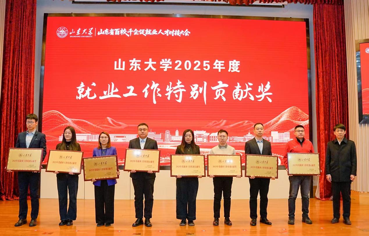 会议还为在促进山东大学毕业生高质量就业方面作出突出贡献的国家电网有限公司、中国建筑集团有限公司、华为技术有限公司、海信集团有限公司等16家用人单位颁发了2025年度山东大学“就业工作特别贡献奖”奖牌。