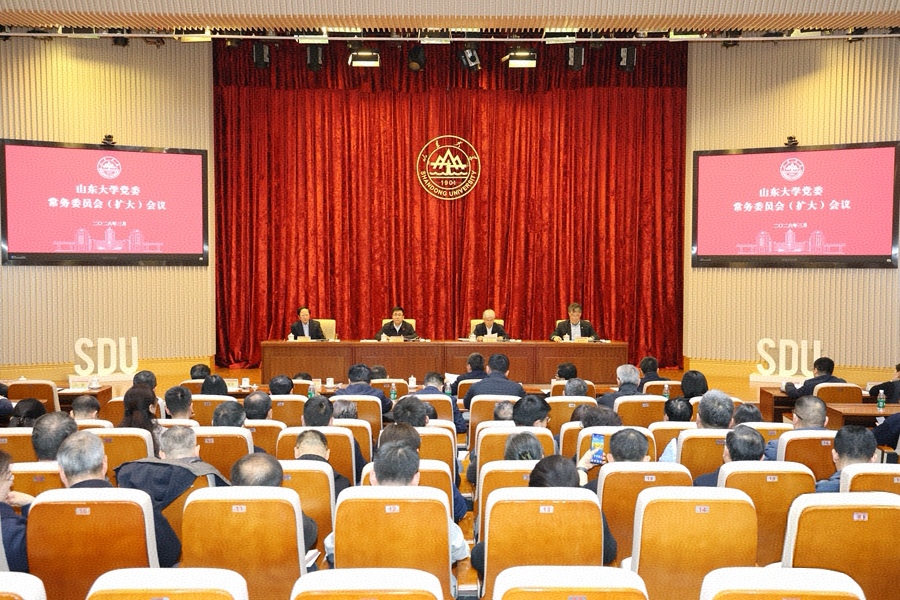3月20日下午,山东大学党委常委会召开扩大会议,专题学习传达习近平总书记在全国两会上的重要讲话和十四届全国人大四次会议、全国政协十四届四次会议精神。校党委书记李忠军主持会议,校长李术才出席会议。